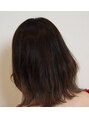外ハネと後ろ流れのヘアースタイル。毛先はグラデーションカラーのアッシュでグレージュ。