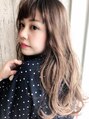 きらりと、つややかな透明感あふれるベージュ系のヘアカラーゆらりとしたロングカールも柔らかく可愛らしいヘアスタイルです