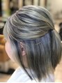 根元から毛先にかけてランダムにカラーを入れて髪が揺れたり、髪を縛ったりすると違う色が見えるヘアカラーです。
