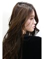 Aラインのロングを巻いてボリュームを出してふんわり仕上げ、colorは全体を暗めにしブリーチをしなくてもわかるhighlightを。