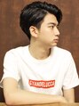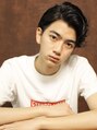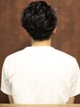 耳周り、襟足をスッキリ短くしたツーブロックショートスタイル。前髪は七三分けで上げて横に流せる様に、トップは高さが出る様に長めでレイヤーを入れ全体的に緩めにパーマをかけて立体感を出しています。