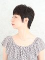 黒髪ベースの大人のベリーショートスタイル。30代40代にもおススメの夏ショート。軽すぎないスタイルでキチンとメリハリをつけ、大人のモード感をだしながら、遊びあるスタイルにしました☆カラーも艶感と透明感重視のダークヌーディーカラーで仕上げてます☆