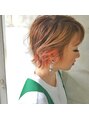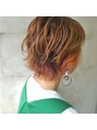 ハイトーンショートが可愛いさたっぷり♪ウェーブショートにハイライトを散りばめて立体感を。クシャクシャな質感がトレンド★。モードな質感にもピッタリなショートスタイル耳上、襟足にオレンジのハイライトがチャームポイントに♪