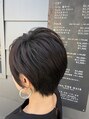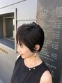 耳にかけれるぐらいのショートスタイルです。ダークトーンのアッシュをON。大人の上品なショートスタイルの完成♪