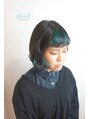 伸ばし中のロブスタイルもピリッとお洒落なアクセントで変化をつけたい☆毛先に入れたエメラルドのアクセントカラーは巻いたり耳にかけたりした時に主張してくれるのがズルい♪全体はくすみ系ダークブラウンの髪色を選んで甘過ぎないイノセントな女性の印象に