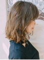 Aラインのミディアムボブになります。ラフなくせ毛風カールが柔らかさを出します!肩につく長さは、はねやすくなりますが、ウェーブ スタイルでカバー!!伸ばしかけの方にもオススメスタイルです◎