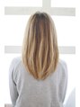 かきあげた前髪に毛先を内巻きに入れたナチュラルストレートスタイルです。扱いやすいところもポイントです。