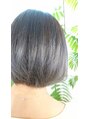 カットは重ためグラデーションボブです。カラーは根元付近6レベルのアッシュ、中間部分は8レベルのアッシュ、毛先のブリーチした部分は10レベルのグレーです。