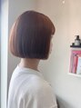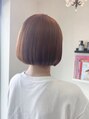 フリンジボブ × オレンジカラーアゴ上くらいに収まるスクエアボブ。真っ直ぐなラインが可愛いです。カラーはオレンジで明るめです。コントロールカラーも使用。