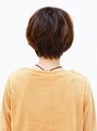全体にゆるくランダムなカールを付けた丸めシルエットのショートスタイル。トレンドの長めバングからのぞく目が、カジュアルな色気をオン。耳にかけることでスッキリ感もキープした大人にもぴったりのスタイルです。【EARTH武蔵境】