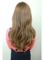 ロングハイトーンカラー☆アッシュベージュに細めのハイライトを全体にカット・・・V字に毛先は少し軽い感じにかき上げバングで大人っぽく