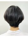 後頭部にしっかりボリュームがでる、前下がりのショートボブカット。髪の毛を耳にかければヘルシーなショートヘアーにもチェンジできます。ボリュームと動きが簡単に出せるように、毛先にCカールのパーマをエアーウェーブでかけて柔らかさをプラス