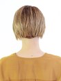 センターパートで分け、全体をタイトにまとめたモードなボブスタイル。えりあしのタイトさが、ぐっと大人の印象に。セミウェットなスタイリング剤やヘアオイルで、透明感をプラスして。【EARTH武蔵境】