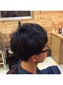 パーマを施しツーブロを入れたショートレイヤースタイルです。
