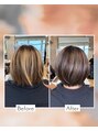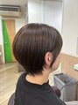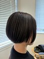 顔まわりにレイヤーを入れてフェイスラインをカバーできるようにデザインしてますえりあしは首に沿うようにスッキリと!(縮毛矯正をしていますが、ナチュラルなスタイルになってます)