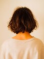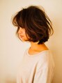 肩につかないくらいのボブでグラデーションを入れボリュームの位置を少し上にあげて、大人っぽさをプラス!アンダーはワンカール、トップはSカールになるようにパーマをかけてふわふわスタイルに!可愛くなりすぎないようバングは流しました!