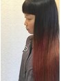 毛先にグラデーションで色を入れて、個性的なカラーに!短いワイドバングとの相性もいいです!!