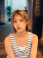 少し長めのショートに切り、髪に動きが出るようにレイヤーを入れました!少し長めのバングでセンターわけもサイドから流すのも◎カラーは明るめのグレージュに染めました!ウェットにしても透明感があり抜け感のあるスタイル!