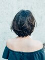 アゴラインでカットしたショートボブ。少し前下がりでカットしているので横からみたラインもシャープですきりとした印象になります。毛先には軽さをだしつつ、カールで動きをつけているので、ふんわりとエレガントなカジュアルさに☆