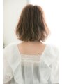 ワンレングスにカットし、表面にはパーマをかけ自然なくせ毛の印象に。ハイトーンのカラーにすることで軽やさ◎