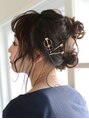 シースルーバングと後れ毛が涼やかな夏感いっぱいのメッシーバン。上下二つゆるく結んだお団子を作り、ふんわりほぐして完成。