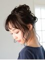 シースルーバングと後れ毛が涼やかな夏感いっぱいのメッシーバン。上下二つゆるく結んだお団子を作り、ふんわりほぐして完成。