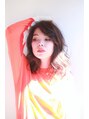 ミディアムレングスのくせ毛風なウェーブスタイルです。前髪をサイドにかき上げる様にするのが今年っぽいですね。