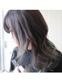 中間、毛先はバレイヤージュでケアブリーチ、そのあとグラデーションでアッシュグレーを。ベースが暗めでも陽の光で透明感。赤みを消した外国人風カラーです。