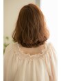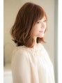 ワンレングスベースのミディアム。顔周りのリバースでカジュアル+フェミニンヘアに♪♪