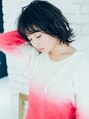 お肌をキレイに見せる暗髪ボブスタイルです。毛先を外ハネすることで首のラインがきれいに見えます!カラーは光に当たると透けて見えるので重たすぎず、浮遊感があると軽く見えます。前髪はやや薄くウブバングにしてます