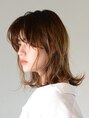 切りっぱなしのワンレングスベースに、毛先のワンカールがポイントのグランジヘア。ストレートに残したシースルーバングとセミウェットな質感がスパイシーな無造作感を演出します。