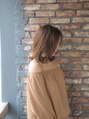 鎖骨にあたって外側に跳ねるのを計算して作ってあるスタイルになります!!ぱっつんボブとは違い、毛先は内側に入るようにカットをし自然に外にハネるのが今どき☆カラーリングは、落ち着いたいろのベージュブラウンで!