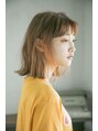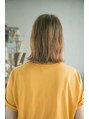 ブラントカットして、インナーレイヤーでセニングを入れたボブに、アッシュオレンジをベースにハイライトでアクセントを。