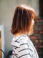 切りっぱなしの外はねボブスタイル!ドライな質感に仕上げることで、ラフさが出ます!そして今っぽいこなれ感もでます!今流行りのシースルーバングもおすすめです! さらにオレンジ系カラーで元気な印象になります!