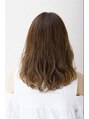 柔らかなウェーブとベージュ系のカラーリングが、ナチュラルでフェミニンな印象を与えてくれます。フェイスラインに短い毛を作ることで気になる輪郭を自然にカバーしてくれます。お客様の顔型に合わせて長さ設定するのがオススメです。
