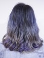 - ブリーチを2回してからのカラーです。ネイビー、シルバー、バイオレットのグラデーションです。