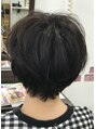 骨格補正カットでどこから見ても美シルエットのショートスタイルに仕上げました。柔らかな動きはくせ毛風ニュアンスパーマがおススメです!