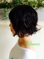 前下がりボブにスパイラルとコイル巻きのミックスパーマ。あえてピックアップだ巻いたスタイル。