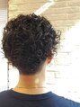 サイド、バックは刈り上げて残った部分を少しきつめにパーマあてました。トップから動きが出るように少しレイヤーを入れてます。