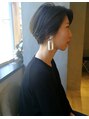 襟足ギリギリの丸みのあるショートボブ。襟足の処理は柔らかく自然にします。襟足が短くても女性らしく見せます。