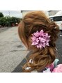 編み込みとフィッシュボーンとくるりんぱで作ったハーフアップです。とてもお顔を小さくみせます。