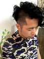 左右アシメに刈り上げて、トップの髪の毛を長く残してパーマをあてました。左に全部髪の毛を寄せてすっきり個性的に☆