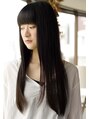 ストレートタッチを主役にしたナチュラルなロングスタイル。リラックス&モード感をテーマにパツン前髪とつややかなスーパーロングがシンプルながら目を引きます。【高座渋谷/大和/湘南台/長後/オージュア/Aujua/縮毛矯正/白髪染め/髪質改善/酸性ストレート】