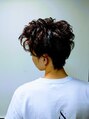 アシンメトリーを強調したツーブロックスタイルに、前髪を立ち上げるパーマスタイルですレッド系のカラーをメッシュで入れることでかっこよさも表現しています!