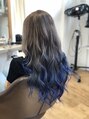 全体ブリーチ後にグレージュをのせ毛先にグラデーションでブルーを入れています。夏におススメカラーです!(^^)!