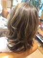 オリーブベージュ/ブリーチなしWカラー/赤み消し/レイヤーカット