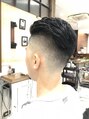 外国人風バーバースタイル。まわりは0ミリでスキンフェードです。サイドはツーブロックにしてトップは長さを残してるので下ろしてもいけます。