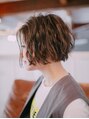 前下がりボブにパーマをしたスタイルです!ユルめのパーマですが全体的に大きくしっかりとパーマがかかっているので動きのあるスタイルになります!ストレートのボブに飽きてきたりボリュームが欲しいときなどにオススメです!