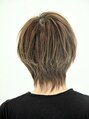 リップラインの前下がりショートグラデーション。後頭部にボリュームと丸みを残しながらスタイルを作る。美人ショートは斜めバングがポイント。カラーリングは10トーンのなめらかで艶が出るベージュブラウン。