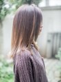 切りっぱなしのミディアムスタイル!顔周りにレイヤーを入れラフで重たすぎず抜け間のあるスタイルに!グラデーションカラーでぼてっと感をなくしました。多毛の方でもブリーチできない方でもグラデーションカラーで毛先を明るめにしおくのがオススメです☆